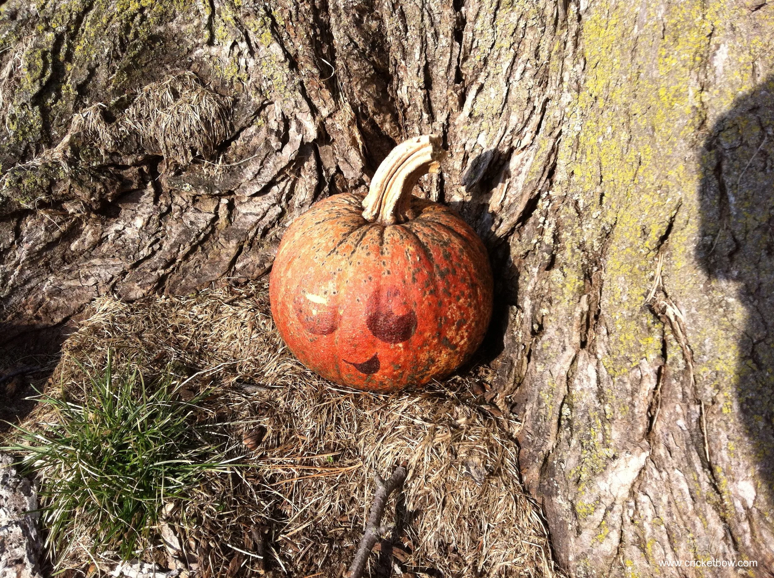 The face, still visible on the shell, smiling and getting ready to welcome the Spring. Only a dry husk of its former self, I am still curious as to why nothing ate it before the winter came. One thing is certain, I will try the same thing this Halloween.